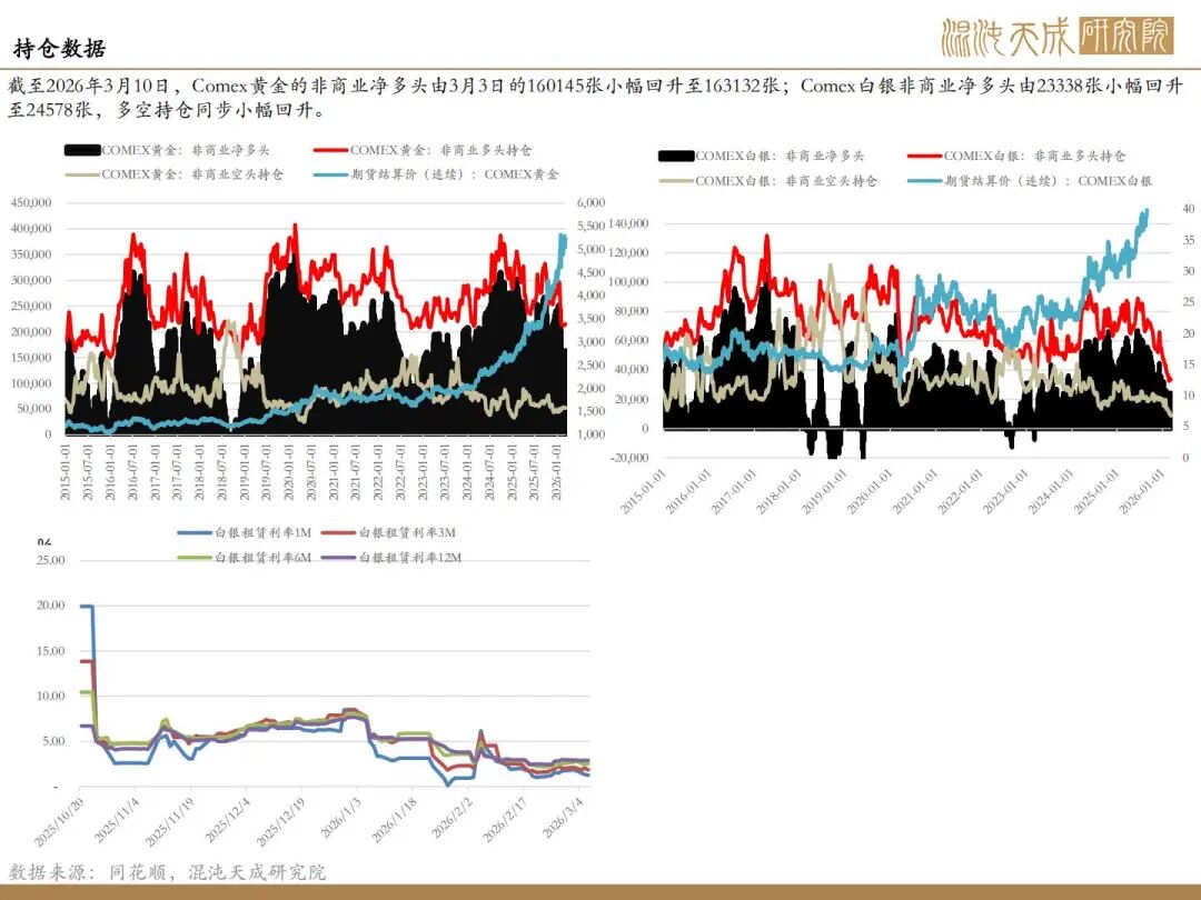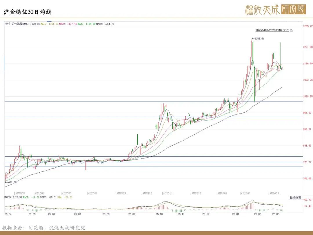 油价试探100关键关口,与上周的应激性反弹不一样,本周更多是经历消息面驱动和相关计算后形成的结果,且鉴于霍尔木兹海峡的情况,短期的恢复出现阻碍,油价伴随战争的持续持续高位。芝商所集团负责人警告特朗普政府,如果在与伊朗战争期间试图通过干预衍生品市场来降低油价,可能会引发“史诗级灾难”。虽然特朗普反复强调称伊朗已“无物可打” ,战争将很快结束。但伊朗最高领袖穆杰塔巴发表首份声明称不会放弃复仇,霍尔木兹海峡将继续关闭,并在必要时开辟新的战线。从伊朗的表态来看,特朗普的表态其实存在自我性,市场的乐观情绪将可能成为后续的风险点。霍尔木兹海峡真实的通行情况才能成为确定性的交易方向,现阶段对地缘的押注存在高度不确定性,对于贵金属而言,最合理的方法是关注支撑位的有效性。