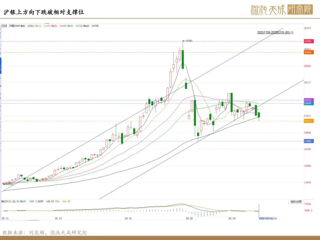 贵金属在地缘风险上行的环境中,形成地缘-油价-通胀预期-流动性的传导链条,而与之同步的是美债信用的长周期驱动,信用驱动也高度关联地缘形势变化,所以本周贵金属走出震荡偏弱的局面。展望下周,地缘局势是关键变量,若冲突继续呈现常态化和扩大化的趋势,其或将对通胀预期和流动性存在进一步冲击,贵金属仍存在短线级别的回调可能;若冲突出现缓解,油价出现回落,市场流动性担忧缓解,贵金属的相对走势或伴随长期逻辑出现支撑。对于贵金属,特别是黄金的定价,更重要的依旧是“货币信用”的定价,这涉及到的是政治地缘等因素而非单经济数据,长胜证券,长胜证券配资,香港长胜证券公司短线级别的流动性仍不是主导其趋势转弱的驱动。本周地缘变化和通胀预期成为市场定价关键,后续的方向仍需观察油价走势和流动性风险的释放情况。消息面上的短期影响,但长期仍需依赖霍尔木兹海峡实际通行情况对油价的确定性影响,且一旦部署水雷,其通航条件恢复将需要较长时间从而冲击实际的物理供应可能。数据和地缘消息均存在不可控风险,仍建议谨慎支撑位看多。